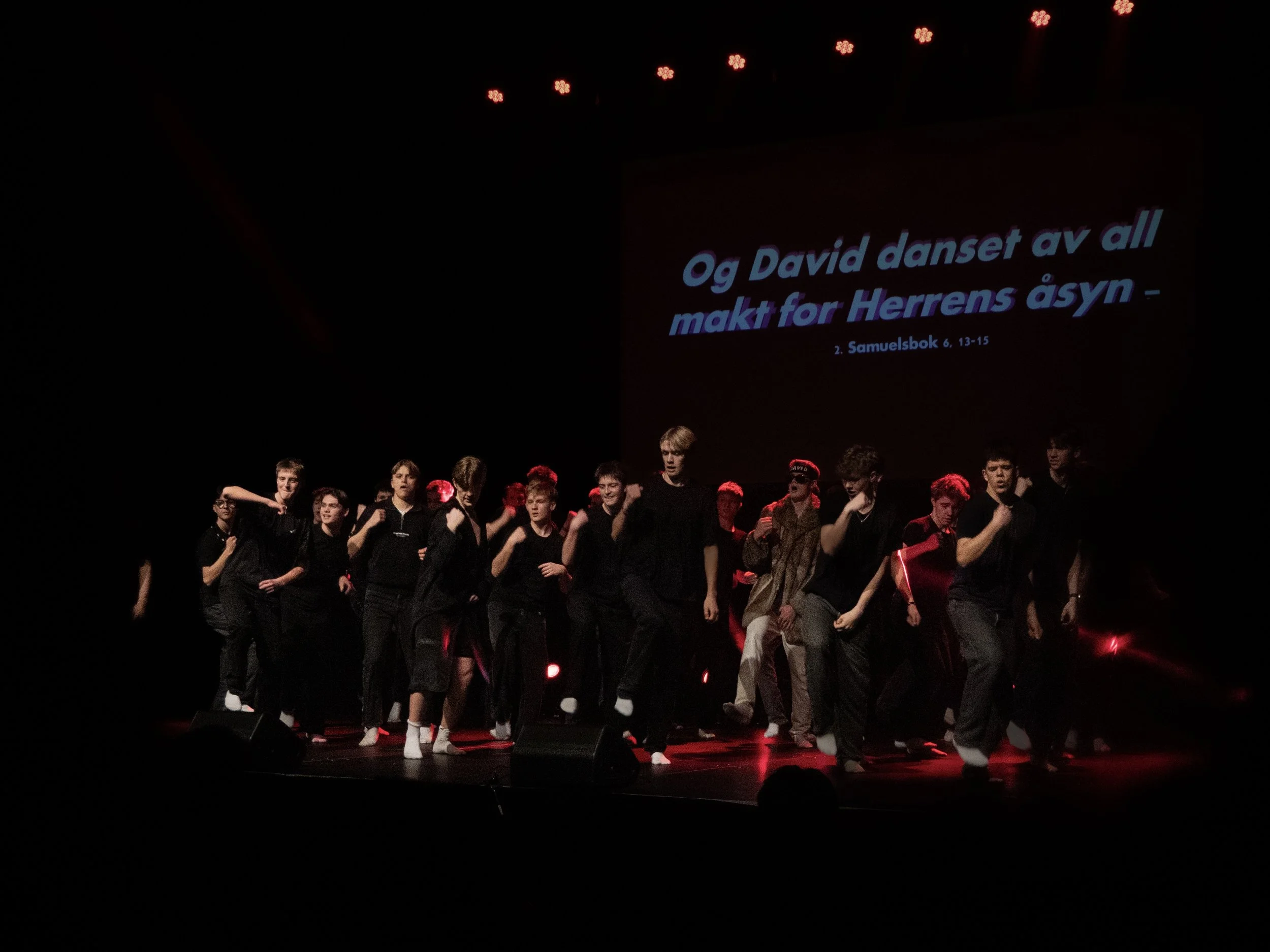 Det vil også Nesheimjentene som avsluttet kvelden med en dans vi aldri vil glemme. Her var som alltid, når Nesheim inviterer til dans, presisjonen høy og bevegelsene nøye synkronisert. Med innlevelse og utstråling som kunne ta pusten fra oss, inntok de scenen med den største selvfølgelighet. Det var allikevel noe nytt over Nesheim dansen og jentene dette året. Variasjonen var større, dansen ble avløst av vakker sang og cello og fiolinspill av ypperste merke. Det beste var etter mitt syn allikevel tematikken. Tidligere år har ofte kropp og kroppslighet vært sentrale ingredienser. I år derimot måtte kropp og utseende vike for ham som fortjener all ære og dans. Underveis slo det meg at Nesheimjentene fremførte et evangelium.